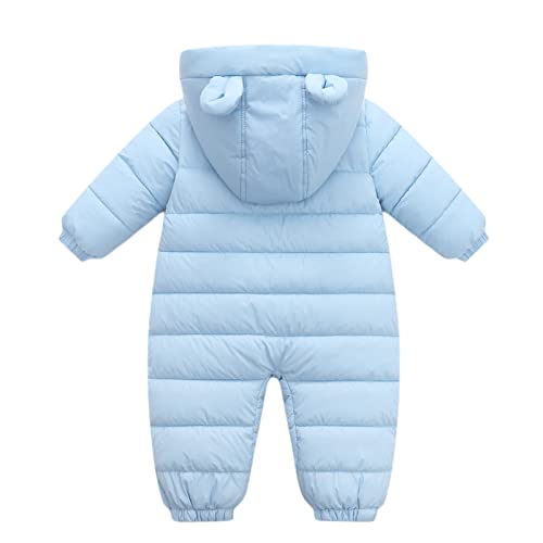 Bébé Combinaison de Neige Garçons Filles Barboteuse à Capuche Tenues d’hiver Manches Longues Ours Bleu 12-18 Mois