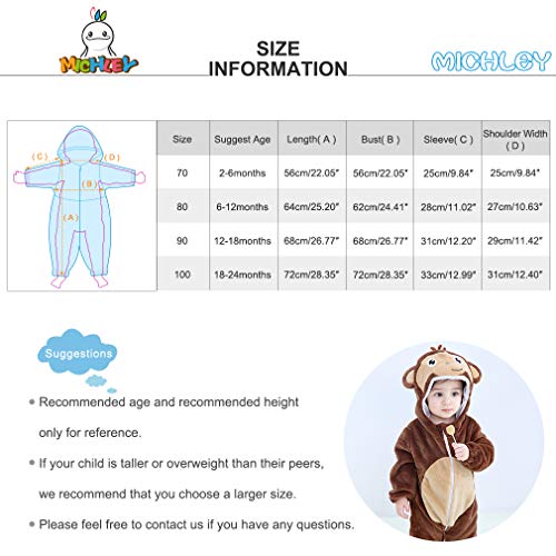 Specification: MICHLEY Bebe Combinaison Pyjama Grenouillère Barboteuse À Capuche pour 0-24 Mois